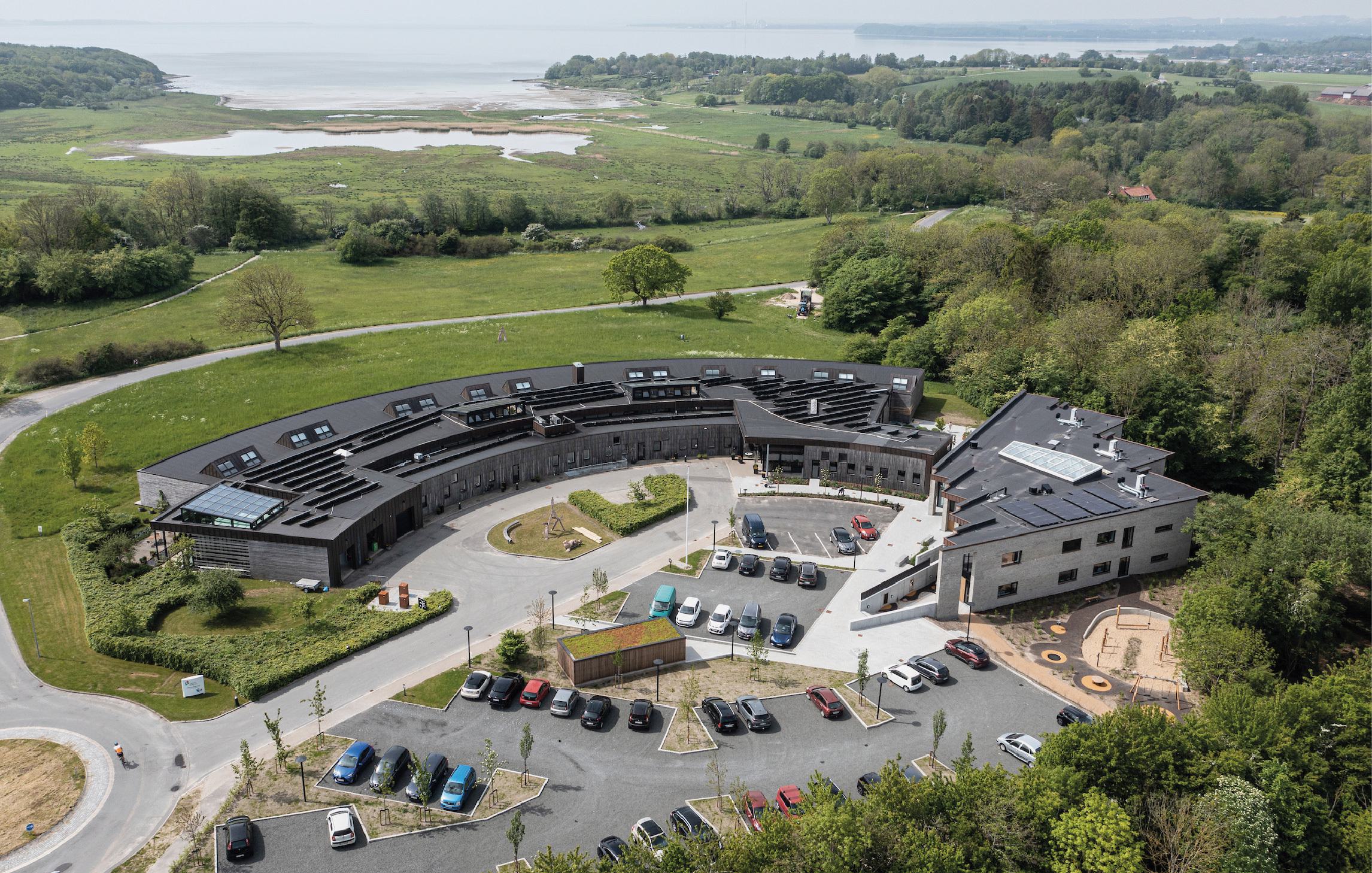 Personaleafsnittet er placeret som en naturlig del af husets hovedindgang. En strategisk placering, der giver fuldt overblik over, hvem der ankommer til og forlader huset, og optimal nærhed og synlighed til samtlige funktioner i huset. Familieboligerne forskyder sig udover skrænten i to etager, så de kommer helt tæt på skovgrænsen – med et smukt panoramakig over de grønne omgivelser. Læg dertil, at alle familieboliger er ligestillet i forhold til både udsigten og afstanden til personaleafsnittet.