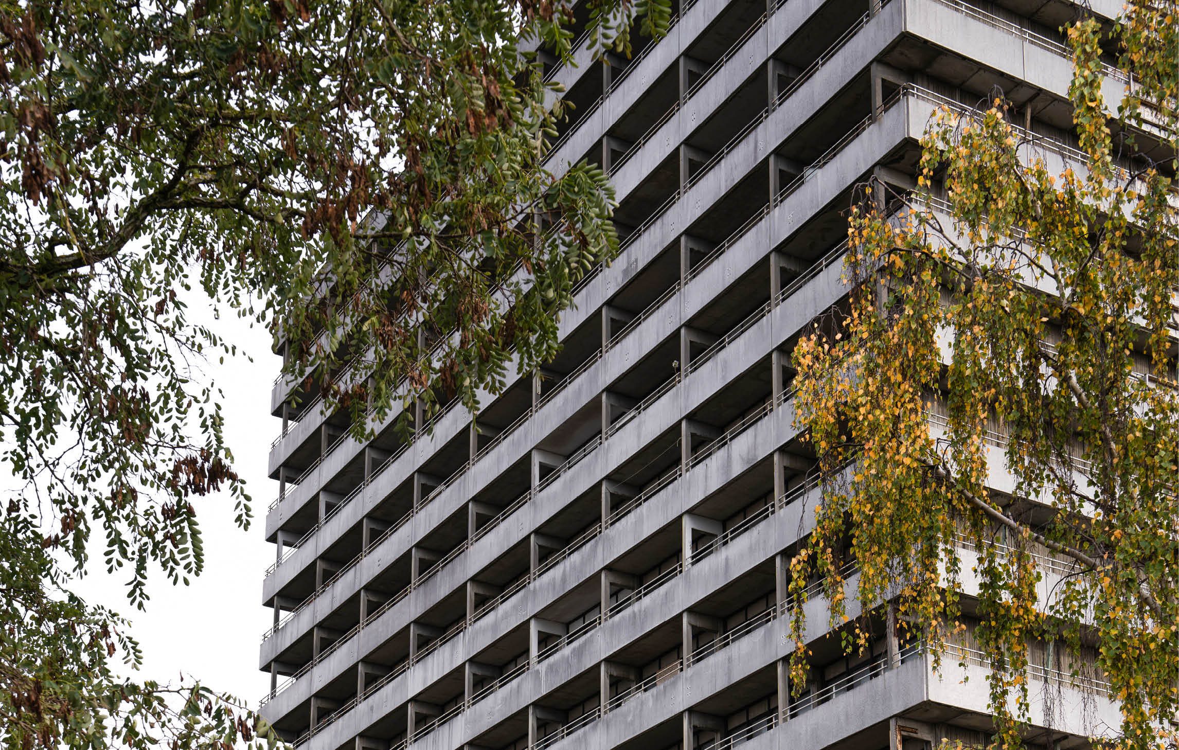 Højhuset på Peder Lykkes Vej i København er et godt eksempel. Et 16-etagers boligbyggeri fra 1970’erne, i mange år udset til nedrivning. Gennem en grundig og helhedsorienteret værdisætning blev potentialerne synlige. I dag omdannes bygningen til 240 ungdomsboliger. Råhuset genbruges. Strukturen bevares. Nye funktioner integreres. Bygningens særpræg og kontekst fastholdes.