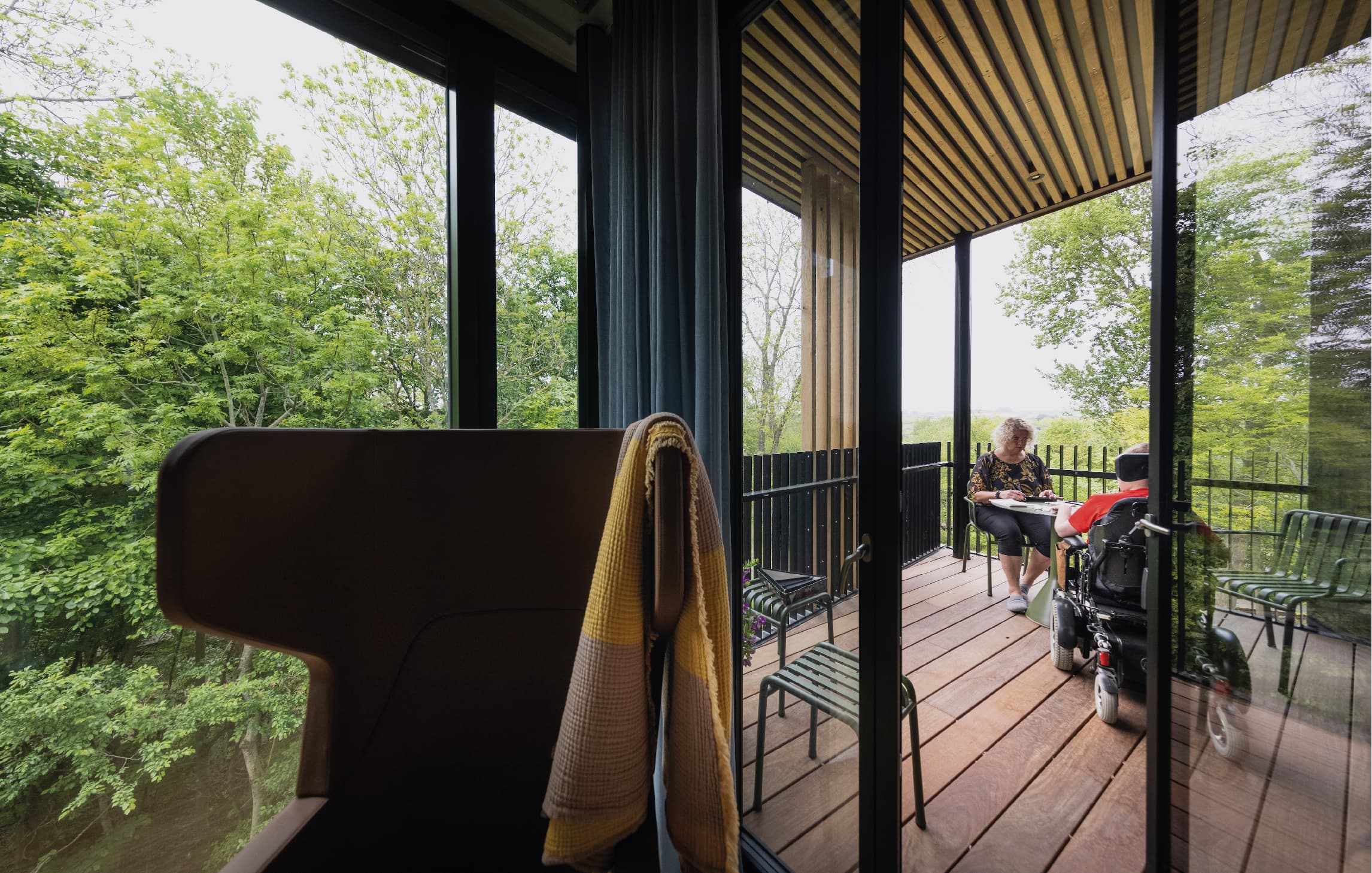 Det har kæmpe betydning, altså det her med naturen, og forholdet mellem inde og ude. Og det, at man kan sidde inde og få træerne lige ind på stuerne, det synes jeg virkelig er løst godt, for det gør, at man har en virkelig god udsigt for stort set alle.Sygeplejerske