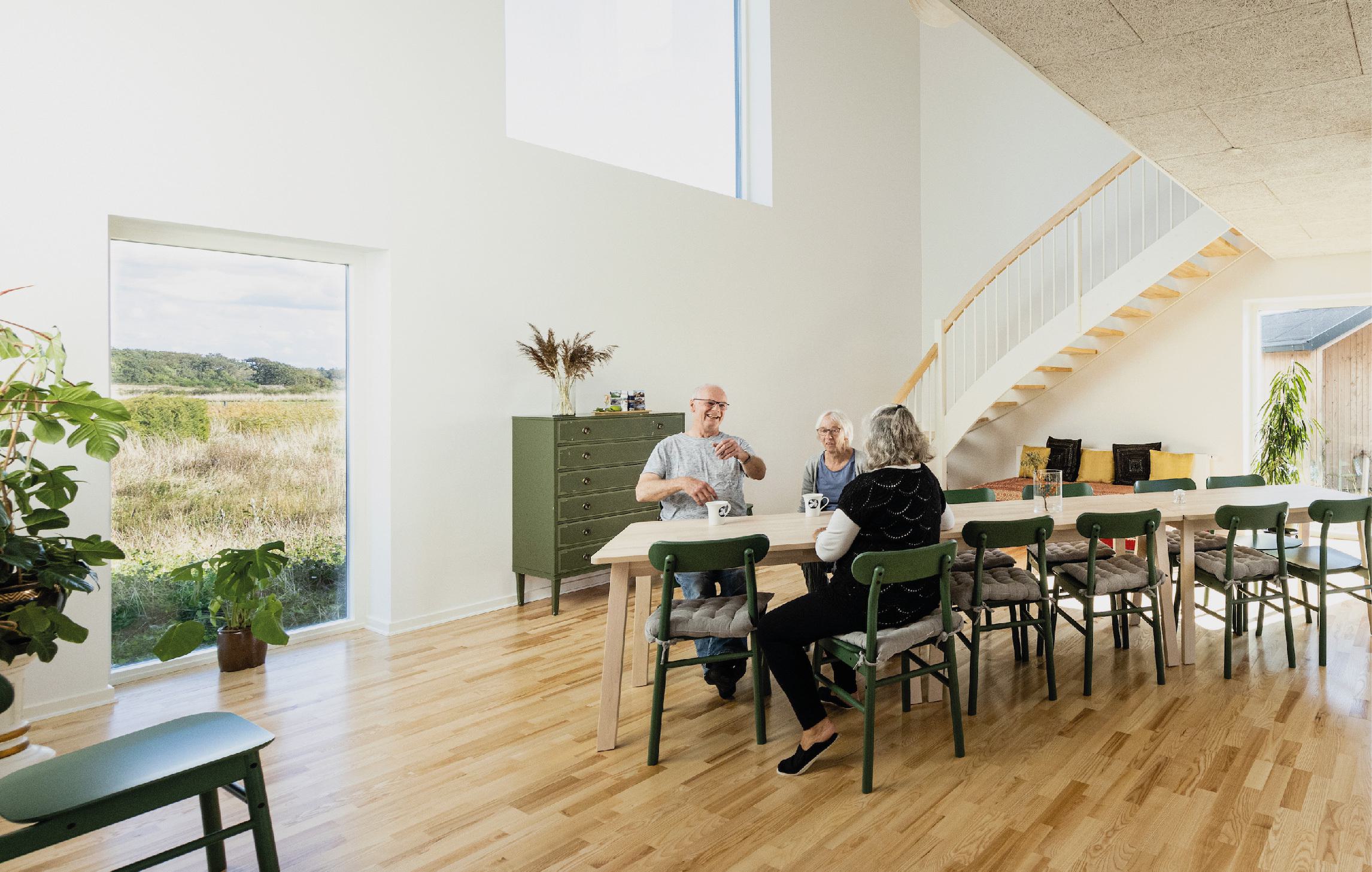 Havtorn provides great opportunities for everyday communities. The senior living community consists of three buildings and an orangery, with each building having integrated communal facilities. The layout of the buildings creates visual contact and orientation towards a common centre and a number of shared facilities, and hereby supports the everyday community, creating informal meetings in everyday life. In the communal house of the living community, residents gather both spontaneously and planned, for example, for communal meals on Fridays.