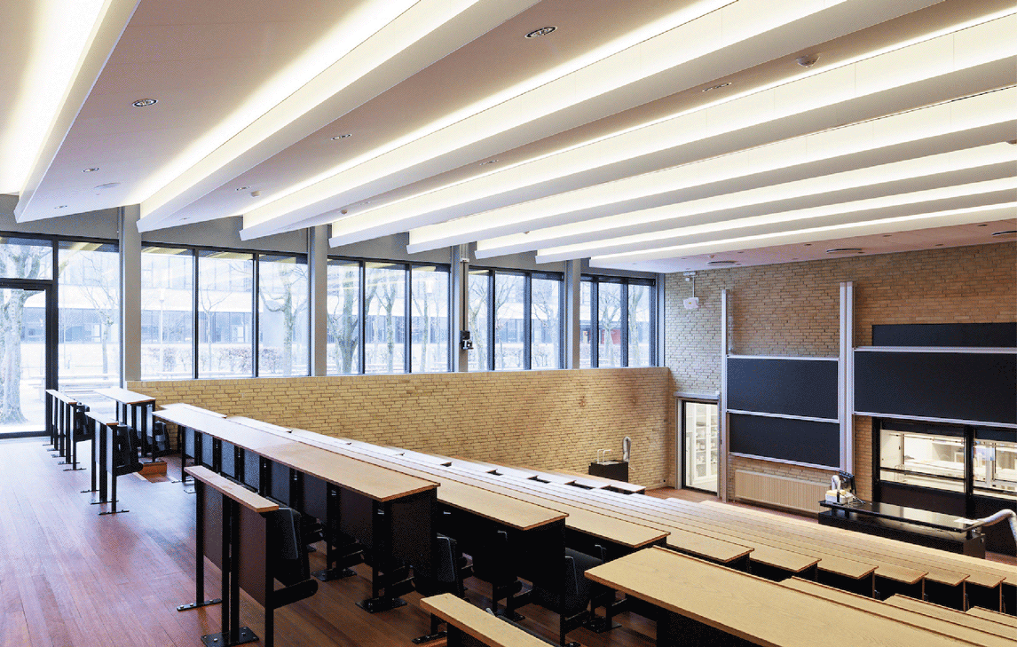 The more traditional lecture halls, classrooms, and laboratories have been supplemented with Active Learning Classrooms (ALCs), Makerspaces, and so-called Brainstorm and Touchdown areas, where students can collaborate more informally and inspire each other. In addition, previously unused areas such as corridors and foyers have been revitalised and transformed into common areas with room for relaxation and social activities.