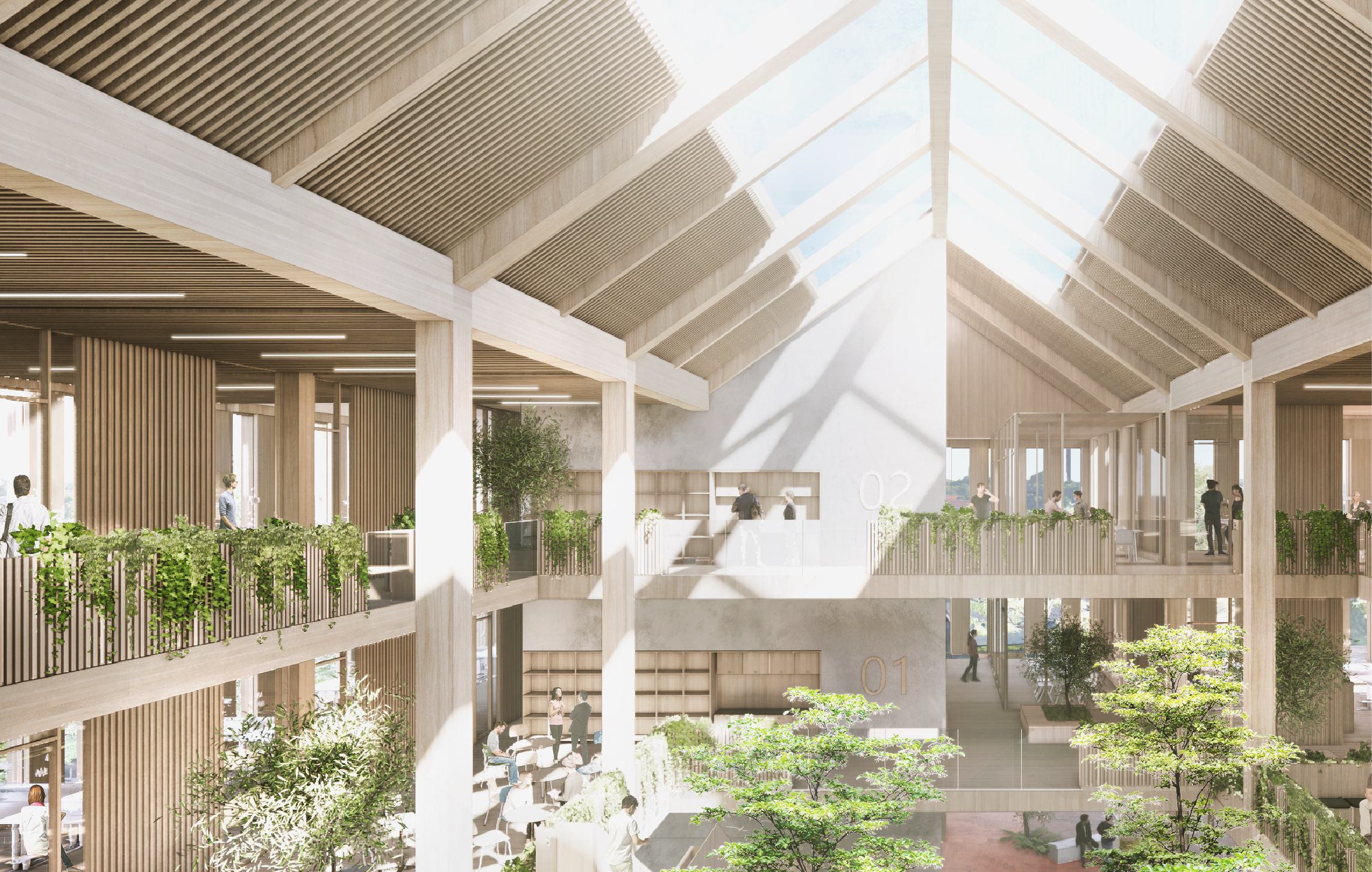 Huset på Torvet - The green passageway in the new office and community centre is a natural buffer zone between the different organisations in the building, creating informal meeting places for visitors and employees alike.