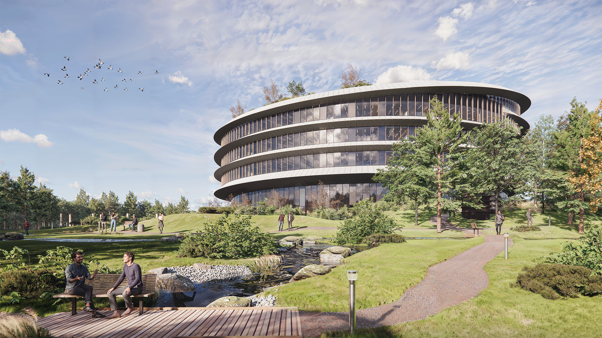 Tilmed har både bygningen og det omkringliggende landskab et stærkt fokus på bæredygtighed, innovation og biodiversitet – bl.a. opføres hovedkvarteret i træ og med en meget ambitiøs strategi for vandhåndtering i og omkring bygningen.