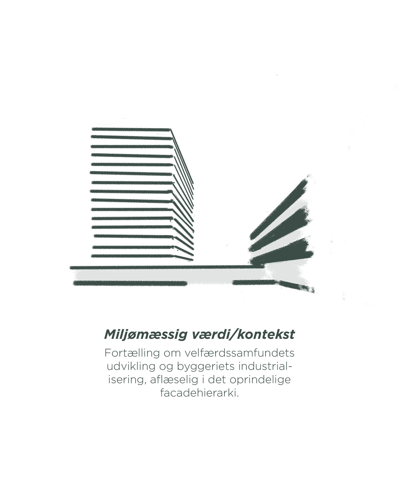 Den fremtidige arkitektur viderefører bygningens karakteristiske udtryk - herunder facadens horisontale bånd, i en nutidig fortolkning. Nye funktioner og materialer integreres nænsomt for at understøtte både beboernes hverdag og bygningens rolle i bydelen.