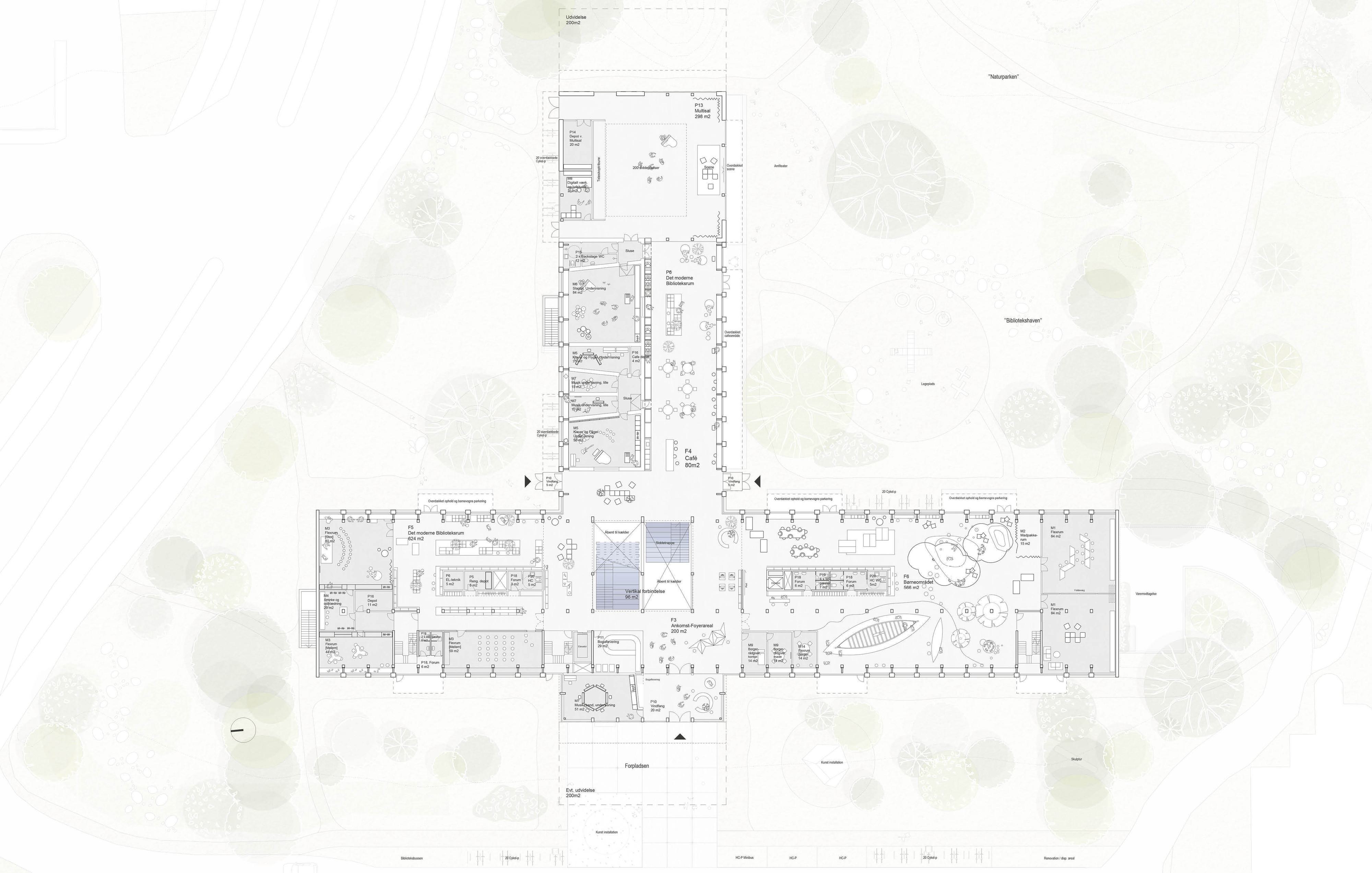 Det nye kulturhus bliver en gennemgående og stor transformation af byens eksisterende bibliotek, som åbnes og bindes sammen på tværs af etager. Kulturhuset udvides med to tilbygninger på begge sider - således tegner det nye kulturhus et kryds mellem det eksisterende og det nye – både symbolsk og funktionelt.