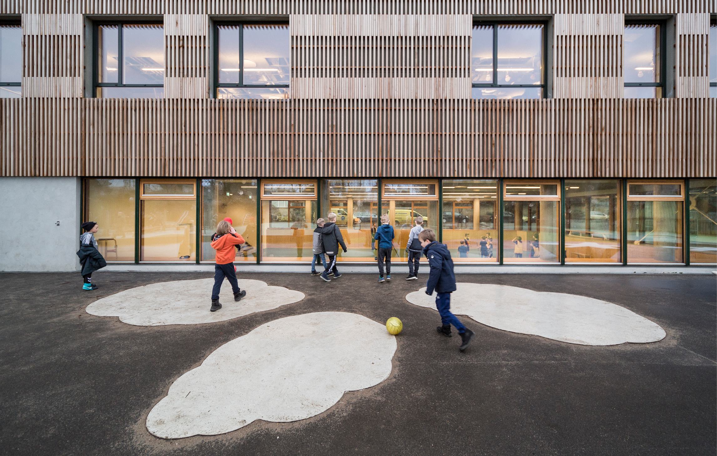 Vi har stor erfaring med at sammentænke læring og landskab, ligesom vi integrerer klimatiltag som en aktiv del af læringsmiljøer – inde og ude. Det giver os mulighed for at skabe bæredygtige miljøer for læring, der forandrer sig i takt med årstidernes skiften. Bæredygtighed handler også om at kunne tilpasse sig forandringer på længere sigt – for eksempel i demografi og pædagogiske principper. Derfor arbejder vi strategisk med at skabe langtidsholdbar arkitektur, som kan omformes over tid – uden at belaste hverken den enkelte institutions økonomi eller miljøet i et bredere perspektiv.